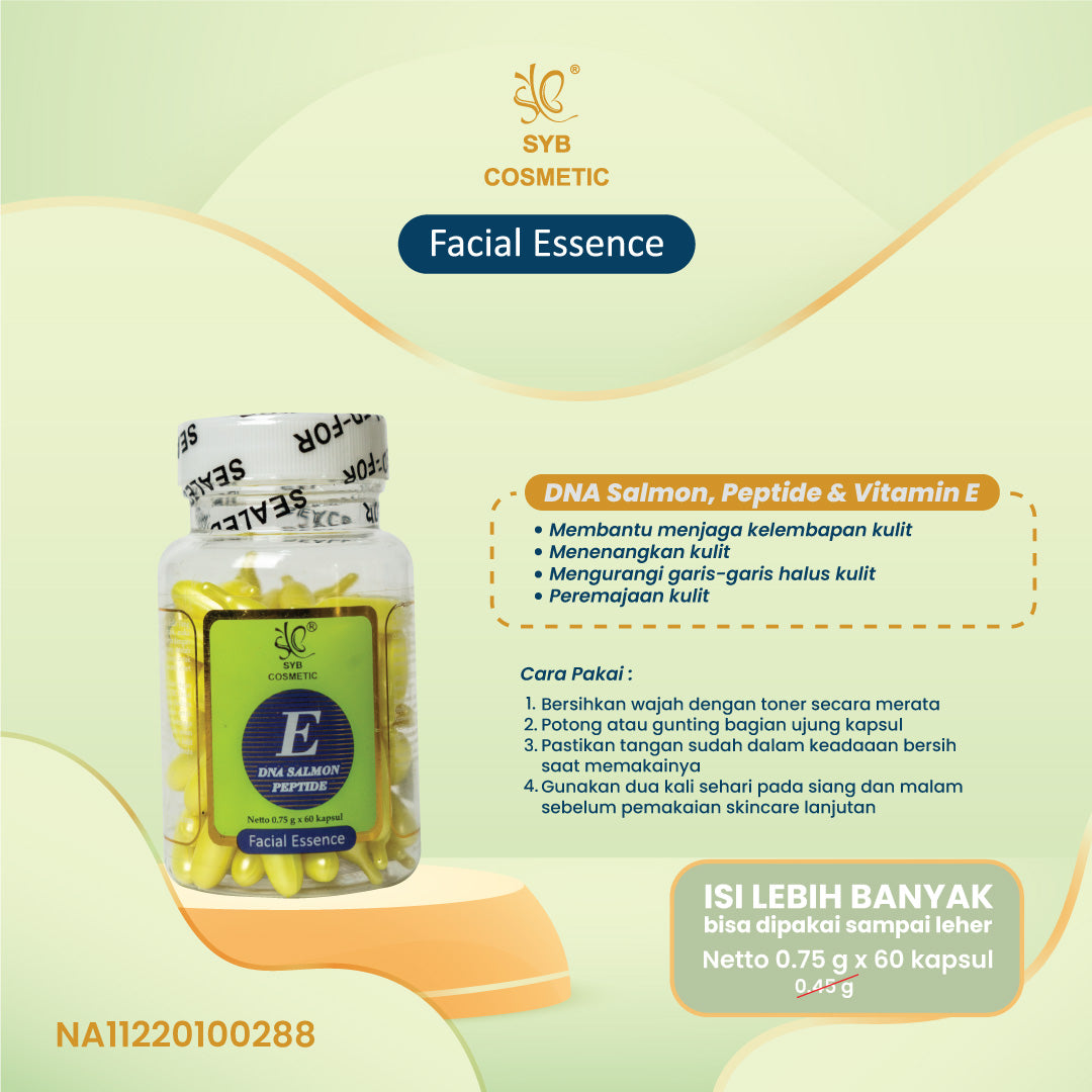 SYB COSMETIC Facial essence memiliki kandungan bahan aktif yaitu DNA Salmon (Sodium DNA) dan acetyl hexapeptide-8 (Peptide) yang bermanfaat untuk membantu menjaga kelembapan kulit, menenangkan kulit sehingga mengurangi garis-garis halus kulit dan peremajaan kulit . Jadi selain melembapkan, SYB COSMETIC Facial Essence juga menutrisi kulit sehingga pemakaian teratur setiap hari dapat membantu memenuhi kebutuhan kulit wajah.