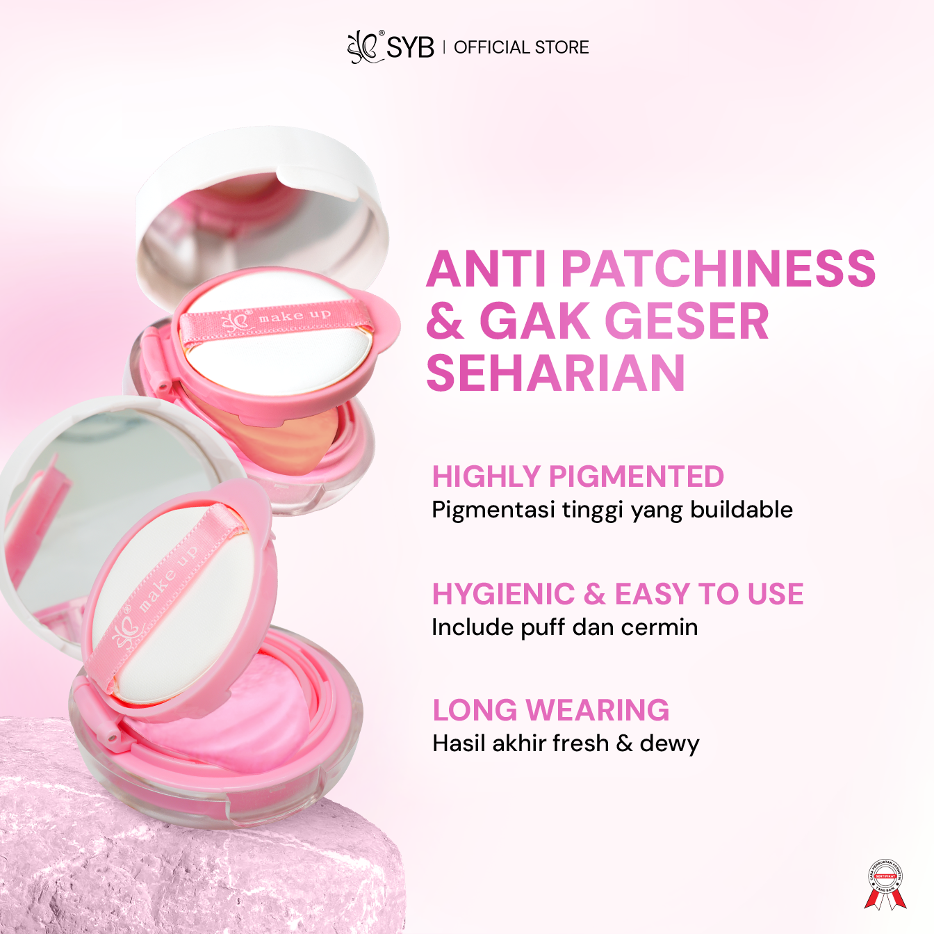 Krim pemerah pipi yang dapat memberikan warna pada pipi. Warna yang dihasilkan tampak alami dan tahan lama. Memberikan kesegaran yang merona pada wajah.SYB BLUSH ON CUSHION mengandung Sodium Hyaluronate yang dapat membantu menarik kadar air pada lapisan kulit, sehingga kulit wajah akan senantiasa lembap dan terhidrasi.Cara Pakai:Usapkan secara halus pada tulang pipi, bawah mata, atau sesuai keinginan.
