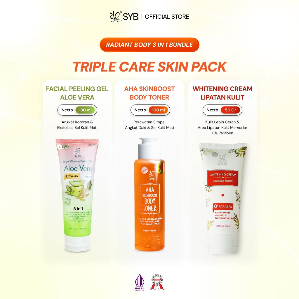 SYB PAKET SLENGKI KINCLONG (AHA TONER+WHITENING CREAM LIPATAN+PEELING GEL ALOEVERA)