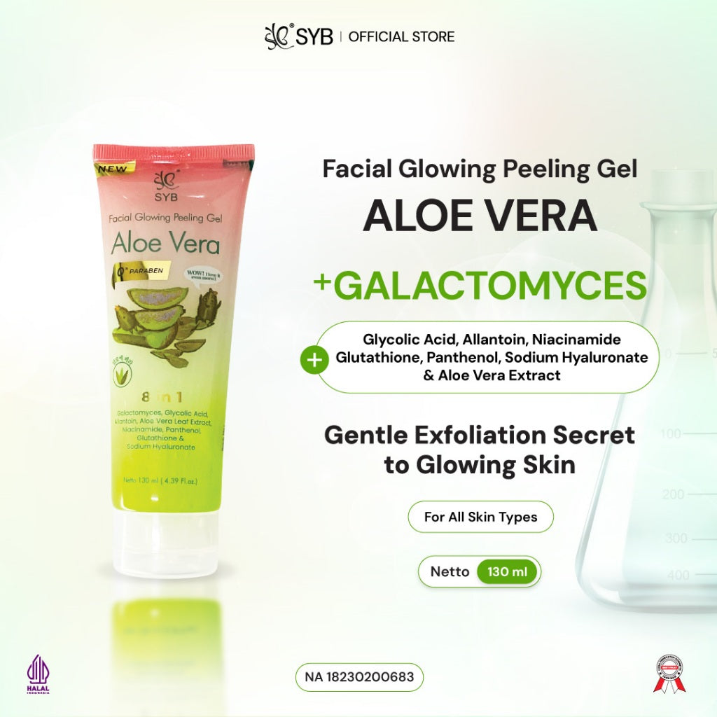 SYB FACIAL GLOWING PEELING GEL ALOE VERA cocok untuk kulit sensitif, berjerawat dan kemerahan.