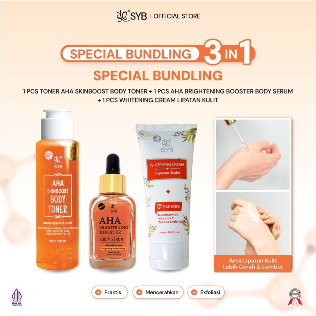 AHA Toner 100ml + Whitening Cream Lipatan + AHA Brightening Body Serum 30gr