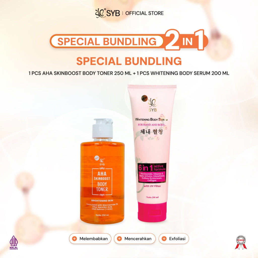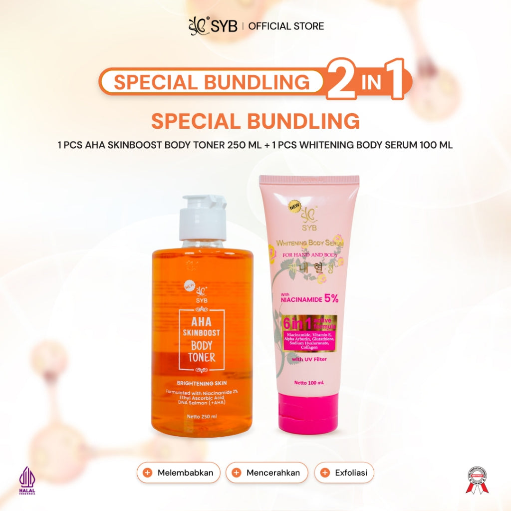 Toner Badan dengan kandungan Glycolic Acid (AHA), Niacinamide 2%, Vitamin C Ethyl Ascorbic Acid (EAA), DNA Salmon dan Allantoin yang bermanfaat untuk membantu mengangkat sel-sel kulit mati dan kotoran (daki) pada kulit, menutrisi kulit, dan memberikan efek soothing pada kulit. Membantu membuat kulit tampak lebih cerah, halus, dan bersih.