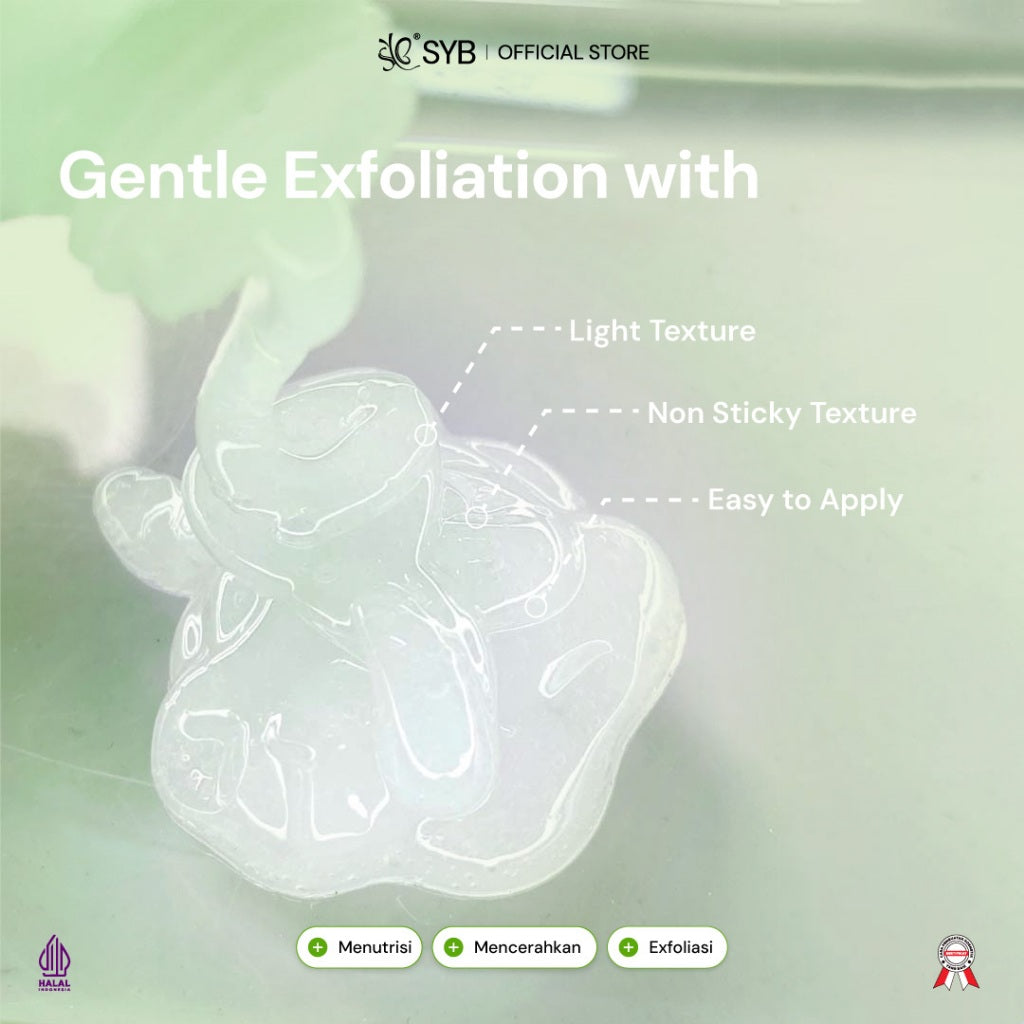 NEW SYB FACIAL GLOWING PEELING GEL ALOE VERA + GALACTOMYCES cocok untuk kulit sensitif, berjerawat dan kemerahan.