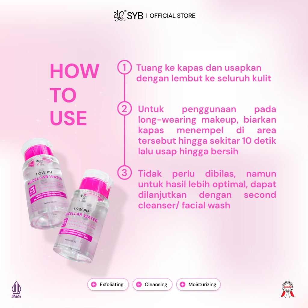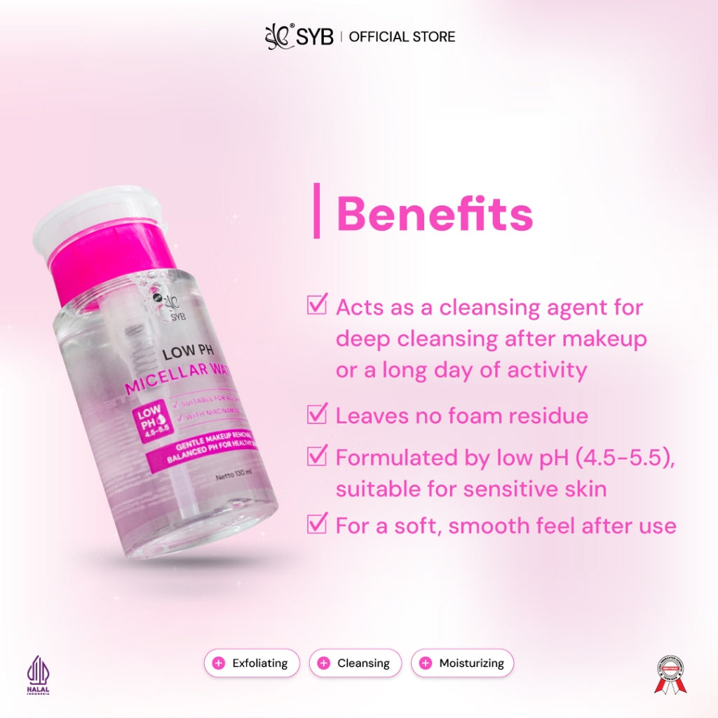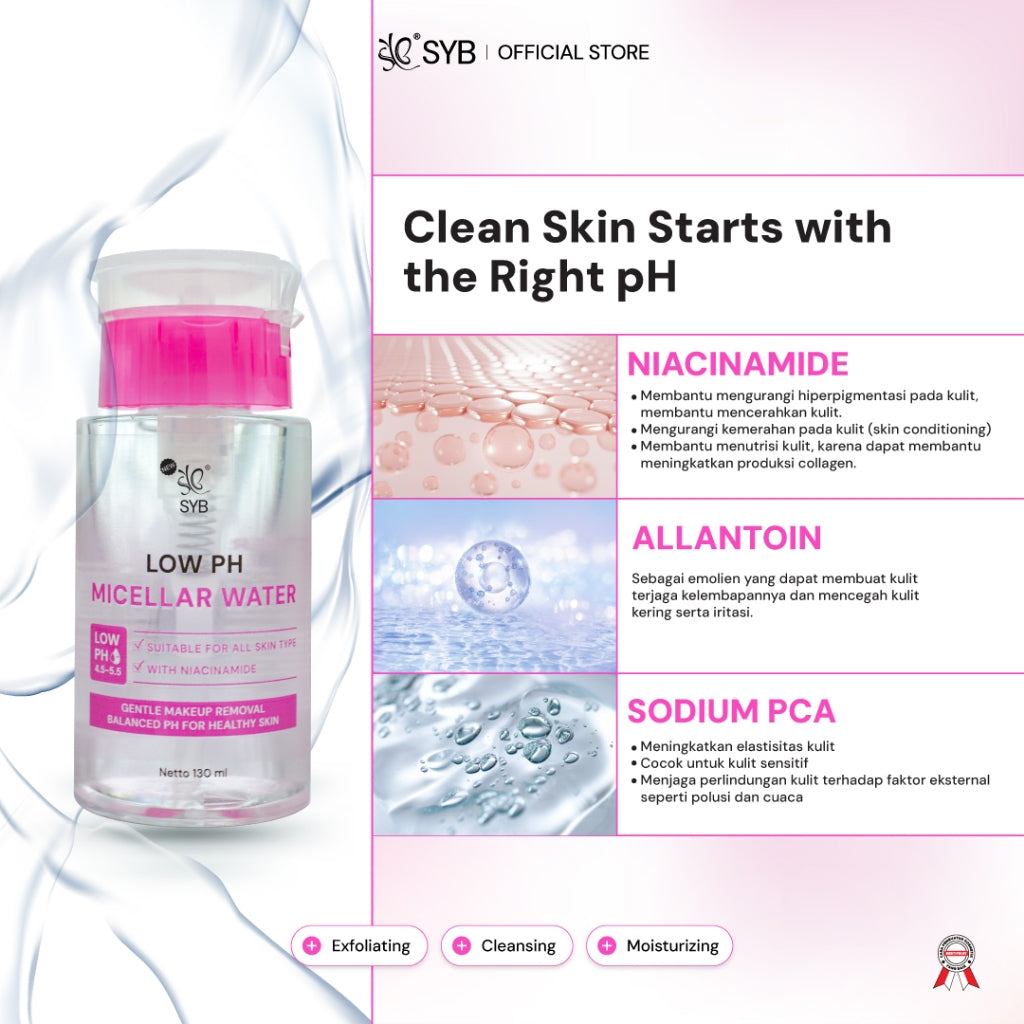 NEW SYB Micellar Water Low PH 4.5-5.5 dengan Niacinamide & Allantoin untuk Kulit Sensitif [130ml]