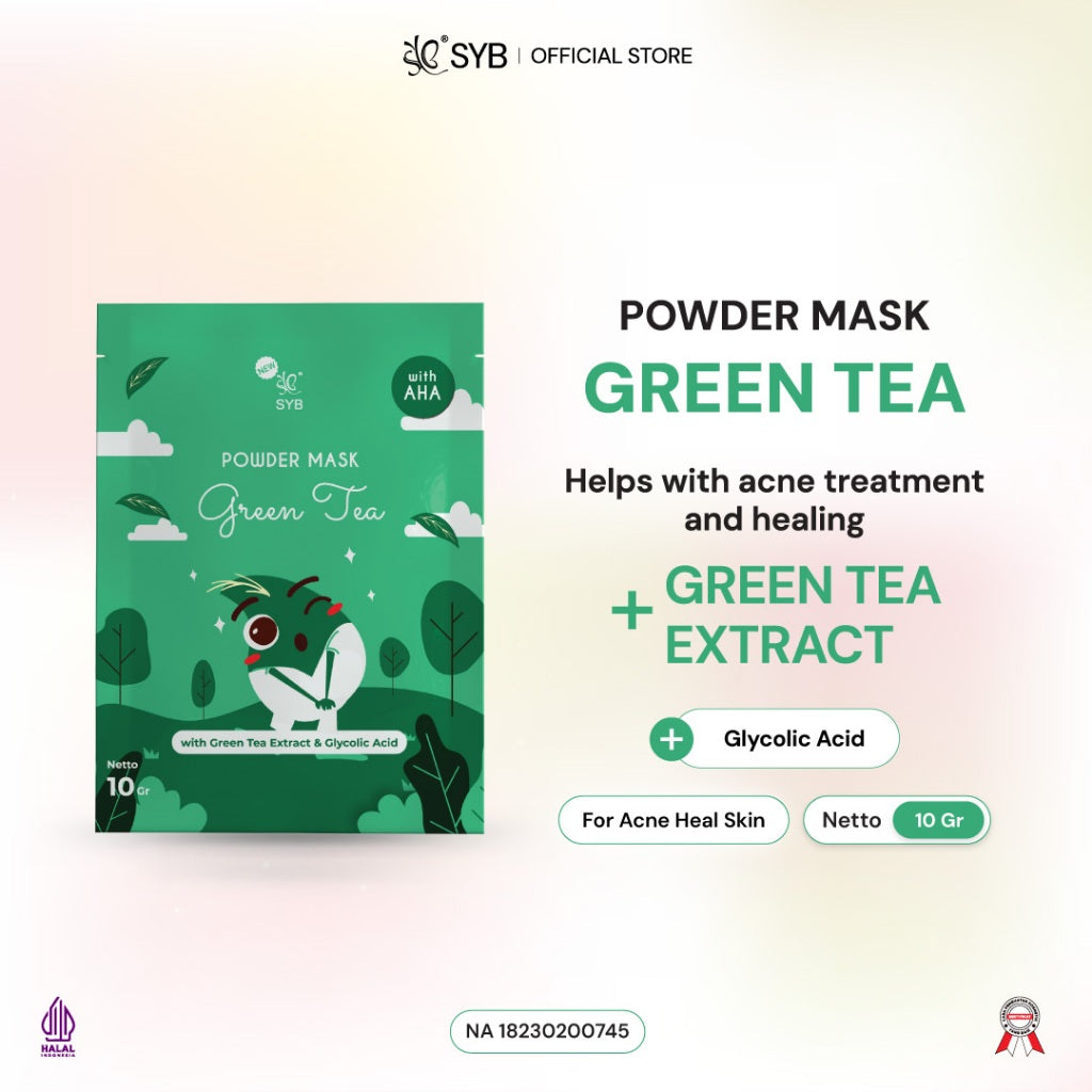 Masker bubuk dengan kandungan Ekstrak Green Tea (Camellia Sinensis Extract) dan Glycolic Acid yang berfungsi untuk membersihkan kotoran pada pori-pori pada kulit wajah serta membantu pengelupasan sel kulit mati. NEW SYB POWDER MASK GREEN TEA cocok untuk kulit dengan masalah penuaan dini.