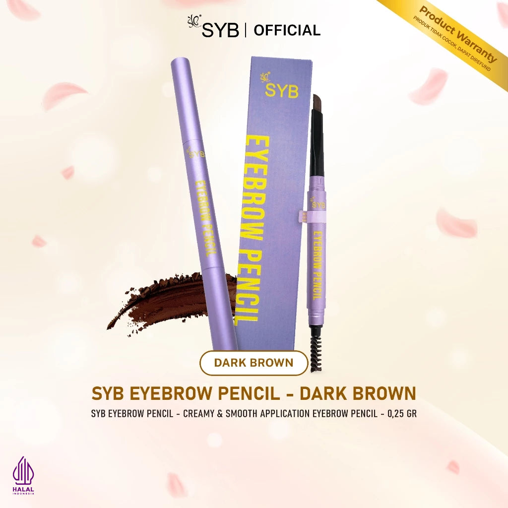 SYB Eyebrow Pencil adalah Pencil Matic Eye Brow merupakan pensil alis berbentuk matic yang digunakan untuk membentuk, mempertegas, dan mempertebal tampilan alis mata sesuai dengan keinginan, sehingga membuat alis tarnpak lebih rapi dan terlihat natural. Teksturnya yang lembut memudahkan saat diaplikasikan pada alis. Selain itu, SYB Eyebrow Pencilini tidak mudah luntur saat digunakan. Diperkaya dengan kandungan vitamin E dan soybean oil yang berfungsi untuk menjaga kelembaban dan sebagai antioksidan.