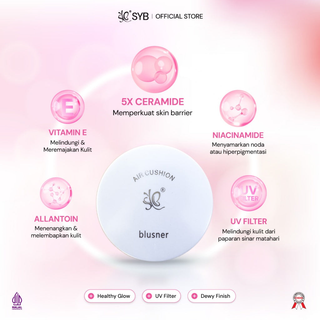 Krim pemerah pipi yang dapat memberikan warna pada pipi. Warna yang dihasilkan tampak alami dan tahan lama. Memberikan kesegaran yang merona pada wajah.SYB BLUSH ON CUSHION mengandung Sodium Hyaluronate yang dapat membantu menarik kadar air pada lapisan kulit, sehingga kulit wajah akan senantiasa lembap dan terhidrasi.Cara Pakai:Usapkan secara halus pada tulang pipi, bawah mata, atau sesuai keinginan.