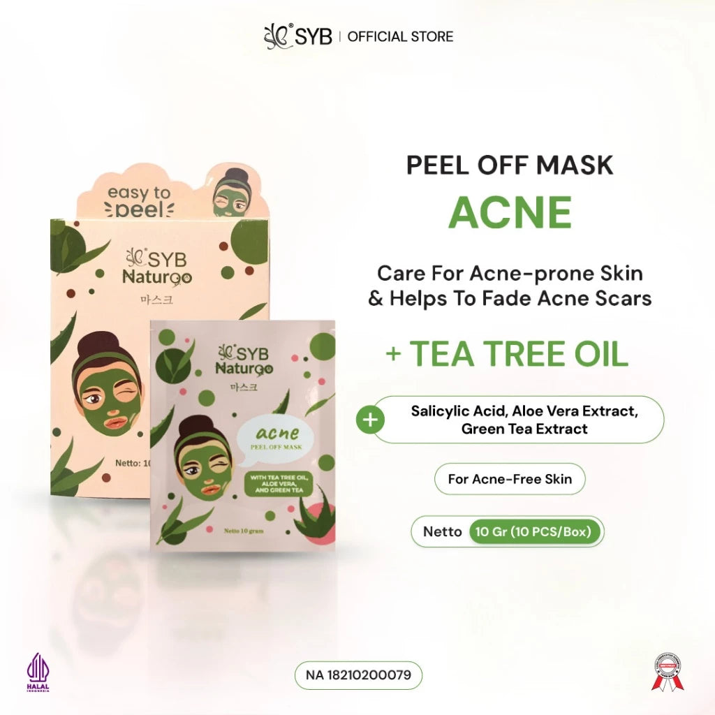 SYB NATUR90 GREEN TEA & ALOE VERA PEEL OFF MASK diformulasikan dengan kandungan Tea Tree Oil dan Salicylic Acid yang berfungsi untuk merawat kulit berjerawat. SYB NATUR90 GREEN TEA & ALOE VERA PEEL OFF MASK dapat membantu membersihkan pori-pori wajah dari kotoran dan minyak berlebih, mengangkat komedo, membantu mengecilkan pori-pori wajah serta menyegarkan kulit wajah. Pemakaian secara teratur akan membantu kulit wajah lebih bersih, halus dan cerah.