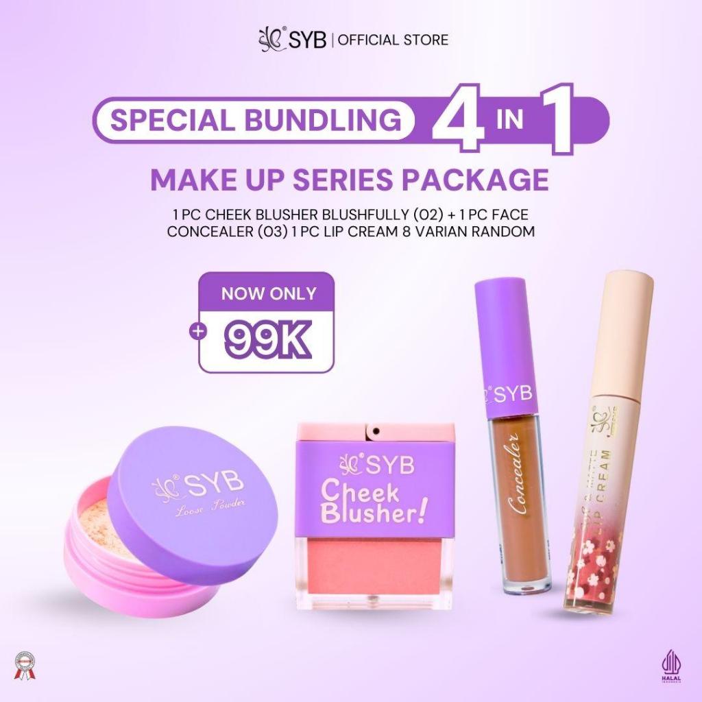 SYB PAKET MAKEUP SERIES 4IN1 (CHEEK BLUSH (NO 02) + CONCEALER (NO 03) + LOOSE POWDER + LIP CREAM (VARIAN RANDOM)